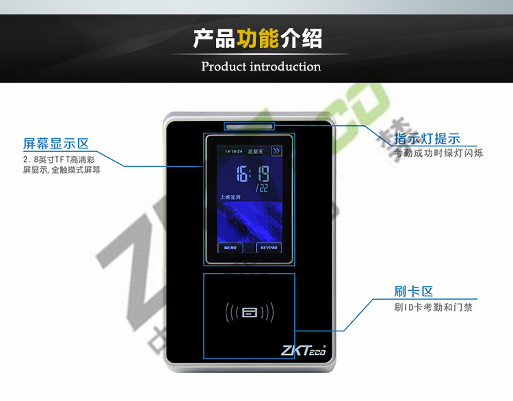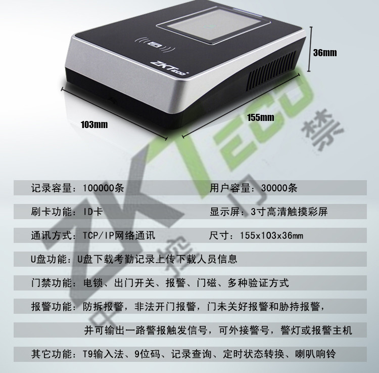 門禁功能:電鎖、出門開關(guān)、報(bào)警、門磁、多種驗(yàn)證方式