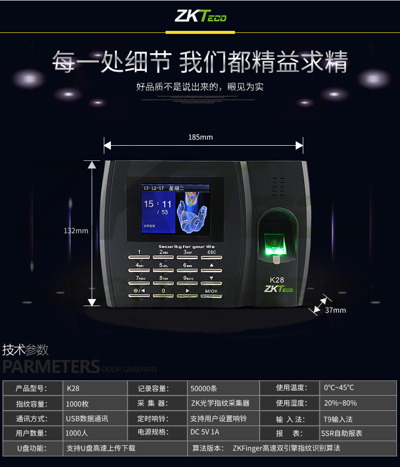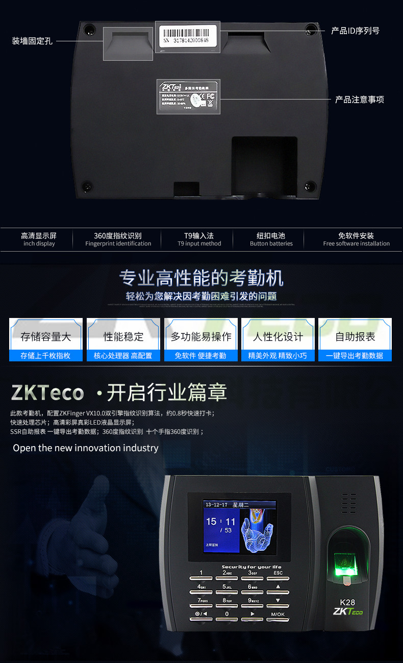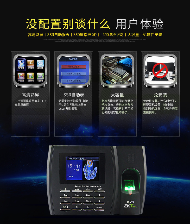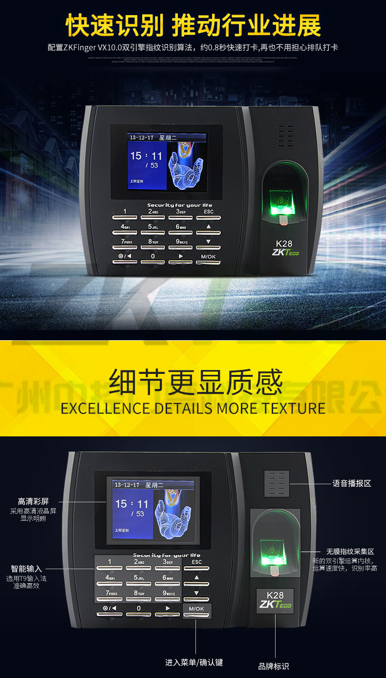 簽到彩屏打卡機 K28指紋考勤機