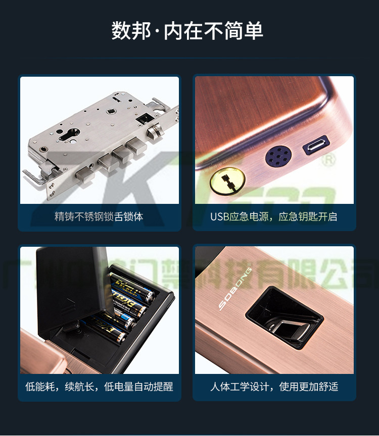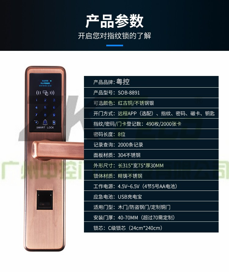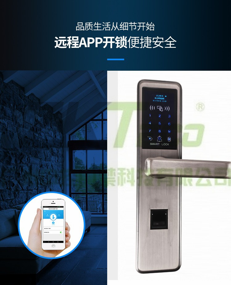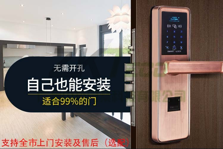 無需開孔指紋門鎖 家用不銹鋼密碼鎖