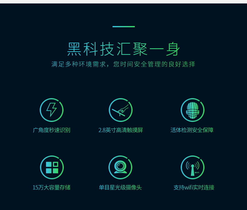 xFace50 是中控智慧全新推出的一款智能人臉識別終端,采用單目星光級200W高清人臉識別攝像頭,支持人臉識別和活體檢測,安全便捷。采用觸摸屏設(shè)計(jì),多點(diǎn)觸摸,操作簡單。遠(yuǎn)距離面部認(rèn)證,超廣角度面部識別。支持WiFi通訊,可手動調(diào)整網(wǎng)絡(luò)設(shè)置,滿足多種環(huán)境的網(wǎng)絡(luò)連接,是您時間安全管理的絕佳選擇。