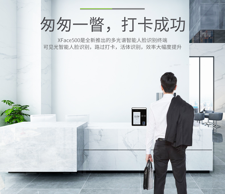 動態人臉識別終端xFace500是中控智慧根據市場需求,全新推出的多光譜智能考勤機,區別于以往的人臉靜態識別,具有快速讀取、動態識別的功能。xFace500采用Linux操作系統,具有指紋驗證、人臉識別等多種驗證方式,簽到多種選擇,輕松考勤;中英文輸入法,輕松編寫。標配Wiegand in/out,具有門磁、報警等多種功能,保證工作安全,是您時間管理全新的選擇。